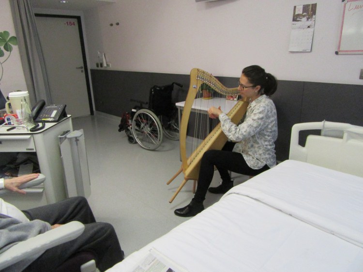La musica terapeutica integra i trattamenti mirati al controllo del dolore acuto e cronico, contrasta le sensazioni di ansia e solitudine mediante una relazione d’aiuto fondata sul linguaggio musicale e offre stimoli percettivi di alta qualità, utili nella sollecitazione di memorie in soggetti con grave deficit cognitivo. La musica d’arpa dal vivo contribuisce inoltre ad una profonda umanizzazione dei luoghi di cura percepiti da degenti, visitatori e membri dello staff.